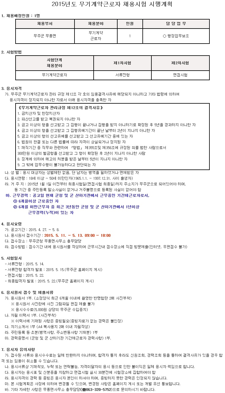 [¹«ÁÖ±ºÃ»] ¹«±â°è¾àÁ÷ ±Ù·ÎÀÚ(ÇàÁ¤º¸Á¶) ä¿ë°ø°í ( ~5.08)