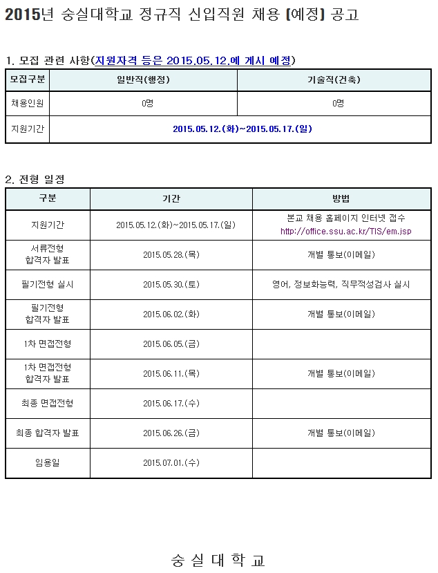 [¼þ½Ç´ëÇб³] Á¤±ÔÁ÷ ½ÅÀÔ ±³Á÷¿ø(°ÇÃà) ä¿ë°ø°í ( ~5.17)
