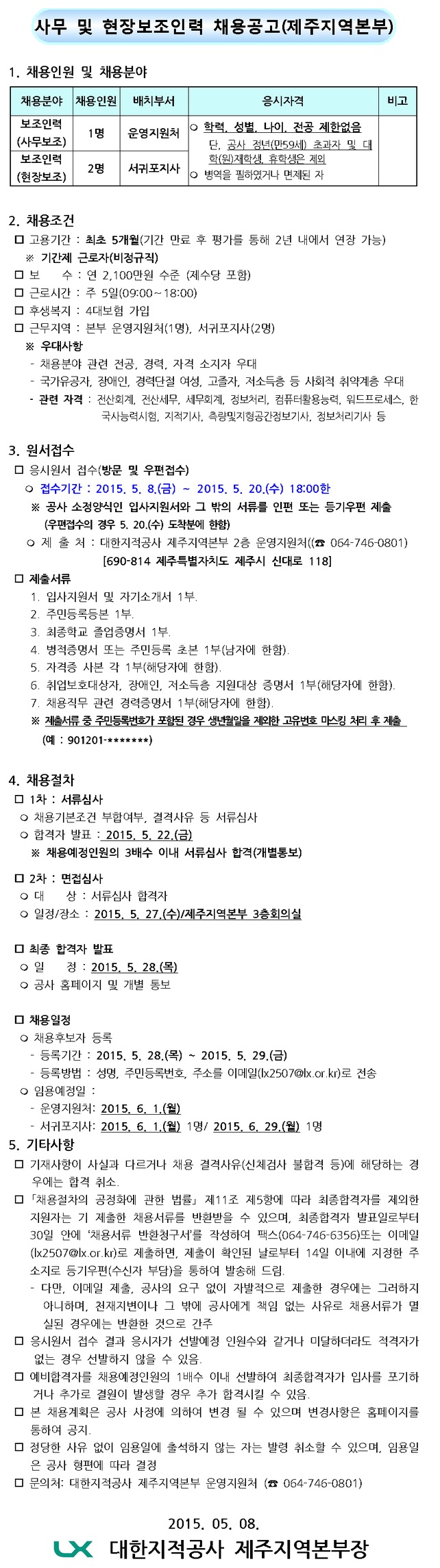 [´ëÇÑÁöÀû°ø»ç] ±â°£Á¦ ±Ù·ÎÀÚ(ÇàÁ¤-Á¦ÁÖ) ä¿ë°ø°í ( ~5.20)