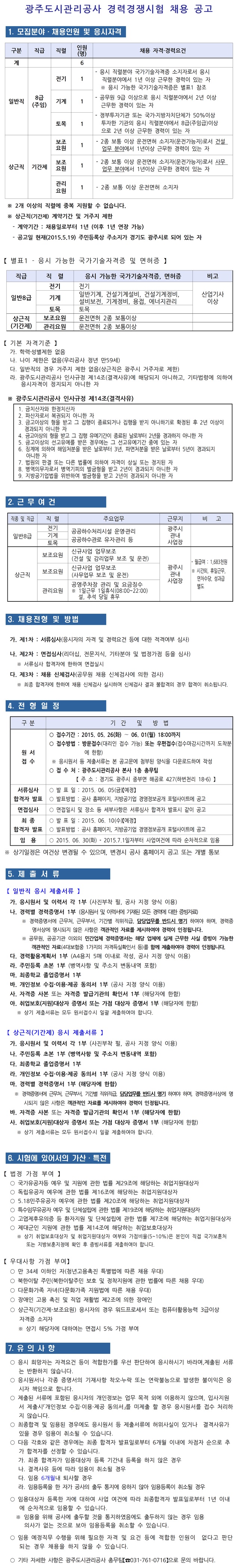[±¤ÁÖµµ½Ã°ü¸®°ø»ç] Á¤±ÔÁ÷ °æ·Â»ç¿ø(Àü±â/±â°è/Åä¸ñ) ä¿ë°ø°í ( ~6.01)