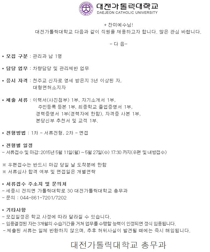 [´ëÀü°¡Å縯´ëÇб³] Á¤±ÔÁ÷ ½ÅÀÔ ±³Á÷¿ø(°ü¸®°ú) ä¿ë°ø°í ( ~5.27)