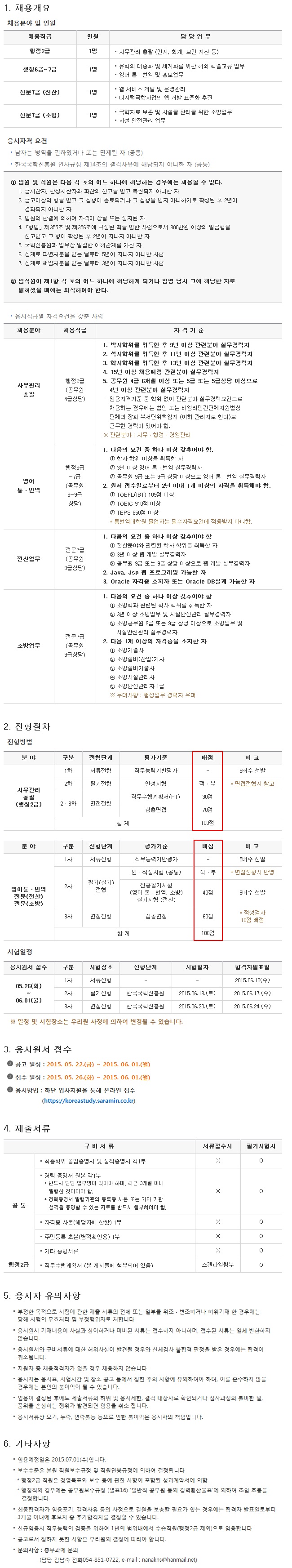 [Çѱ¹±¹ÇÐÁøÈï¿ø ä¿ë] Á¤±ÔÁ÷ ½ÅÀÔ/°æ·Â»ç¿ø(ÇàÁ¤/Àü»ê/¼Ò¹æ/¹ø¿ª) ä¿ë ( ~6.01)
