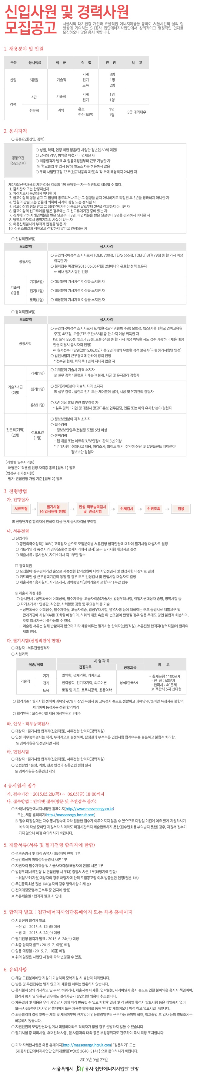 [SH°ø»ç Áý´Ü¿¡³ÊÁö»ç¾÷´Ü ] ½ÅÀÔ ¹× °æ·Â»ç¿ø ¸ðÁý °ø°í ( ~6.05)