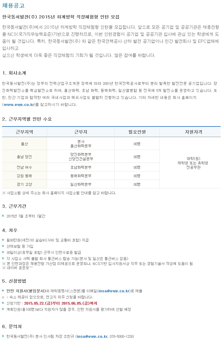 [Çѱ¹µ¿¼¹ßÀü] Á÷ÀåüÇèÇü û³âÀÎÅÏ Ã¤¿ë°ø°í ( ~6.05)