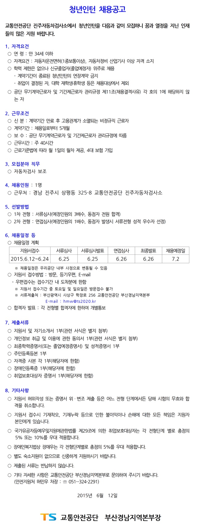 [±³Åë¾ÈÀü°ø´Ü] û³âÀÎÅÏ(ÇàÁ¤-ÁøÁÖ) ä¿ë°ø°í ( ~6.24)