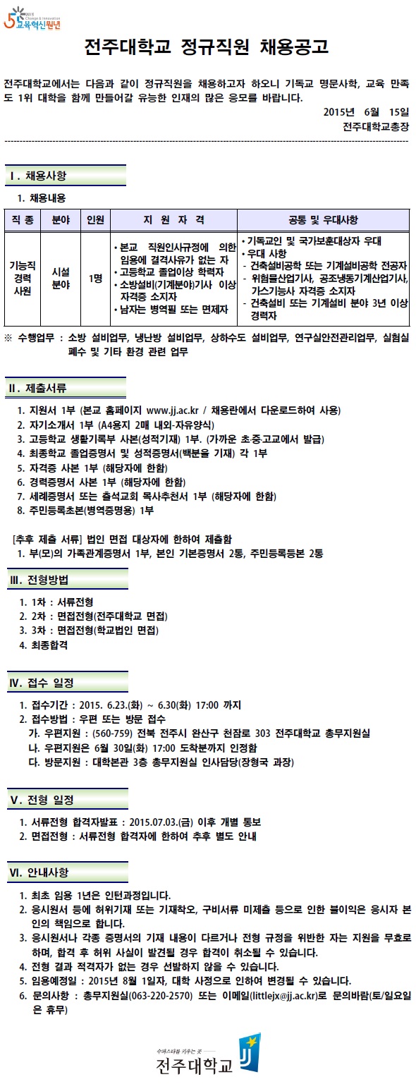 [ÀüÁÖ´ëÇб³] Á¤±ÔÁ÷ ½ÅÀÔ/°æ·Â ±³Á÷¿ø(½Ã¼³) ä¿ë°ø°í ( ~6.30)