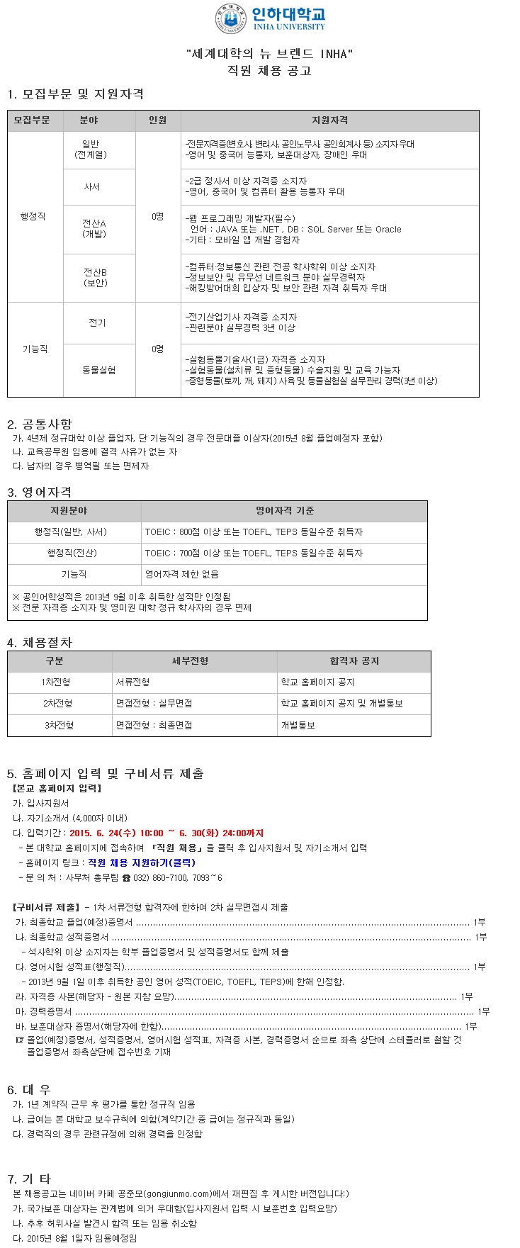[ÀÎÇÏ´ëÇб³] Á¤±ÔÁ÷ ±³Á÷¿ø(Àü±â) ä¿ë°ø°í ( ~6.30)