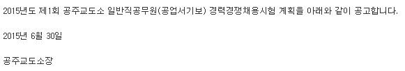[°øÁÖ±³µµ¼Ò] 2015³âµµ Á¦1ȸ ÀϹÝÁ÷°ø¹«¿ø(°ø¾÷¼±âº¸) °æ·Â°æÀï °ø°í ( ~7.10)