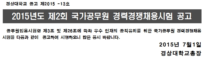 [°æ»ó´ëÇб³] Á¤±ÔÁ÷ ½ÅÀÔ/°æ·Â °ø¹«¿ø(Àü±â) ä¿ë°ø°í ( ~7.13)