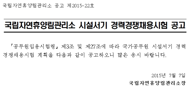 [±¹¸³ÀÚ¿¬È޾縲°ü¸®¼Ò] Á¤±ÔÁ÷ ½ÅÀÔ/°æ·Â °ø¹«¿ø(°ÇÃà) ä¿ë°ø°í ( ~7.22)