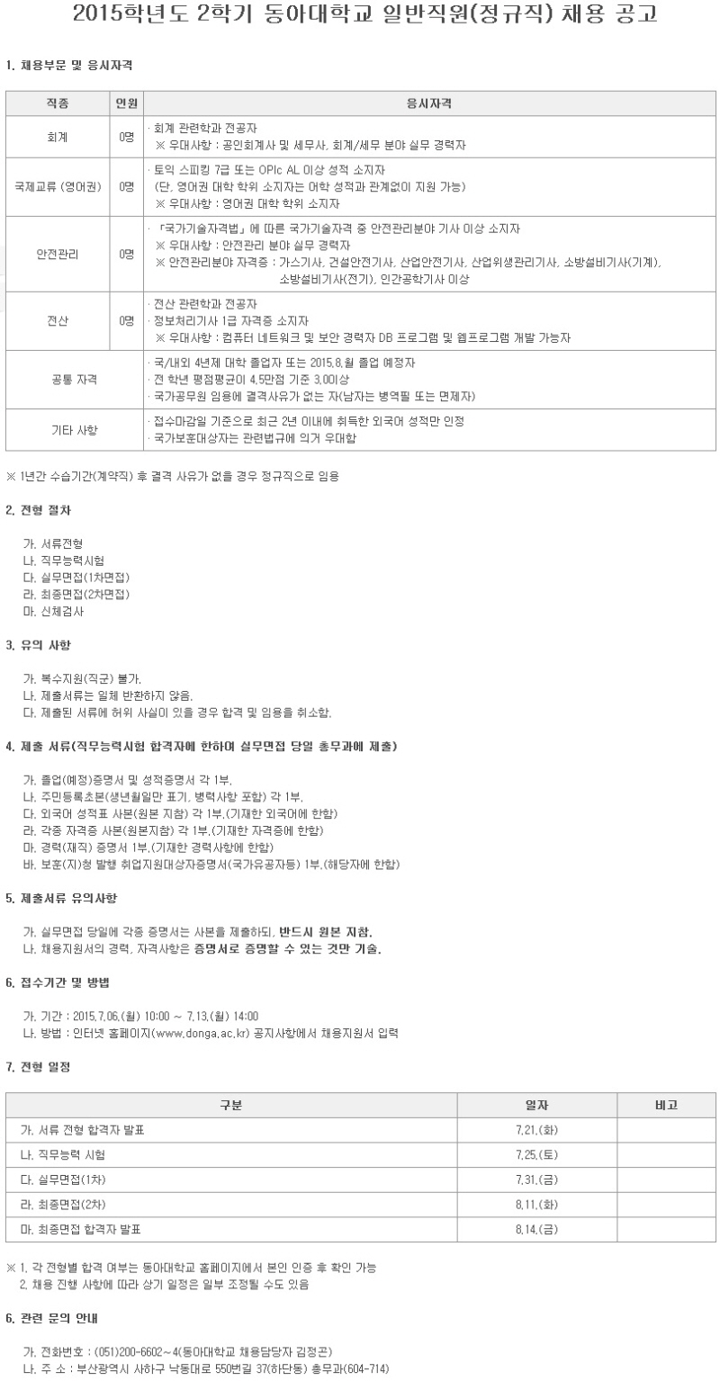 [µ¿¾Æ´ëÇб³] Á¤±ÔÁ÷ ½ÅÀÔ ±³Á÷¿ø(¾ÈÀü) ä¿ë ( ~7.13)