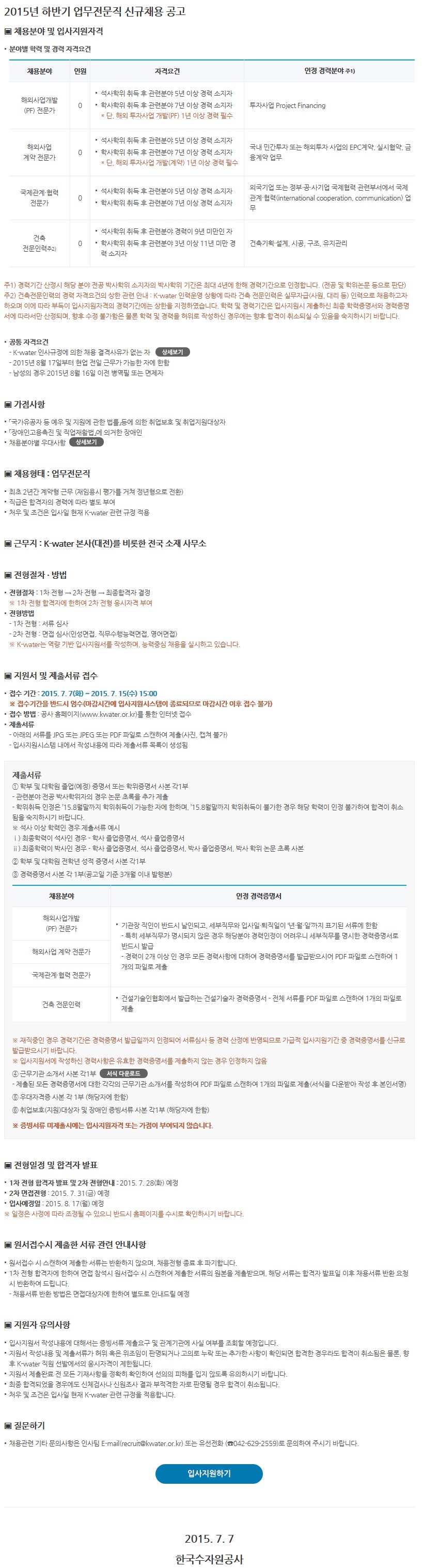 [Çѱ¹¼öÀÚ¿ø°ø»ç] ±â°£Á¦ °æ·Â»ç¿ø(ÇØ¿Ü»ç¾÷/°ÇÃà) ä¿ë°ø°í ( ~7.15)