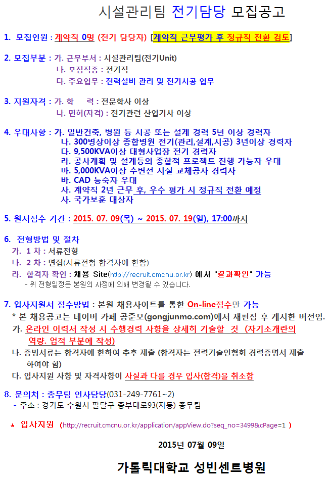 [°¡Å縯´ëÇб³ ¼ººó¼¾Æ®º´¿ø] ±â°£Á¦ »ç¿ø(Àü±â-Á¤±ÔÁ÷ Àüȯ °ËÅä) ä¿ë ( ~7.19)