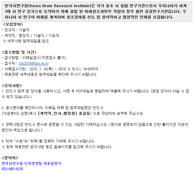 [Çѱ¹³ú¿¬±¸¿ø] Á¤±ÔÁ÷ »ç¿ø(±â¼úÁ÷) / ±â°£Á¦(ÇàÁ¤/±â¼ú) ä¿ë°ø°í ( ~8.05)