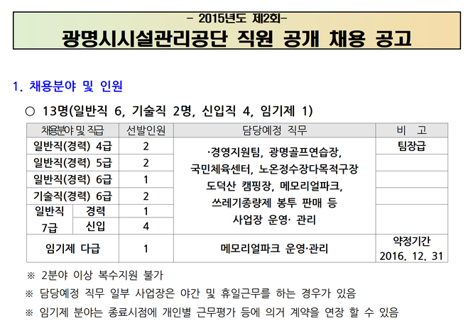 [±¤¸í½Ã½Ã¼³°ü¸®°ø´Ü] Á¤±ÔÁ÷ ½ÅÀÔ/°æ·Â»ç¿ø(±â¼ú) ä¿ë°ø°í ( ~8.03)