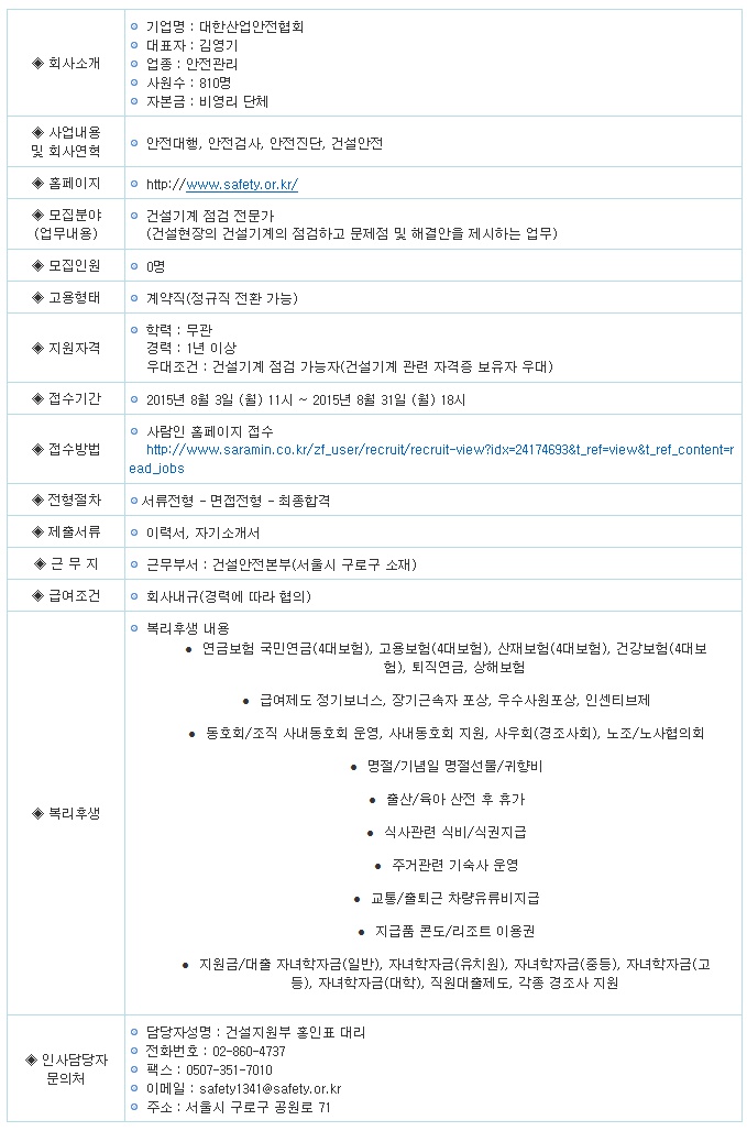 [´ëÇÑ»ê¾÷¾ÈÀüÇùȸ] °Ç¼³±â°è Á¡°Ë Àü¹®°¡ °æ·ÂÁ÷ ¸ðÁý( ~8.31)