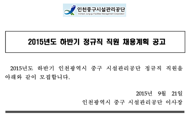 [ÀÎõÁß±¸½Ã¼³°ü¸®°ø´Ü] Á¤±ÔÁ÷ °æ·Â»ç¿ø(°ÇÃà/Åä¸ñ) ä¿ë°ø°í ( ~10.01)