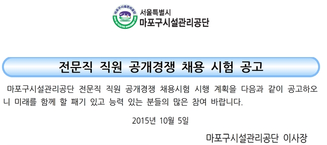 [¸¶Æ÷±¸½Ã¼³°ü¸®°ø´Ü] Á¤±ÔÁ÷ °æ·Â»ç¿ø(±â°è) ä¿ë°ø°í ( ~10.16)