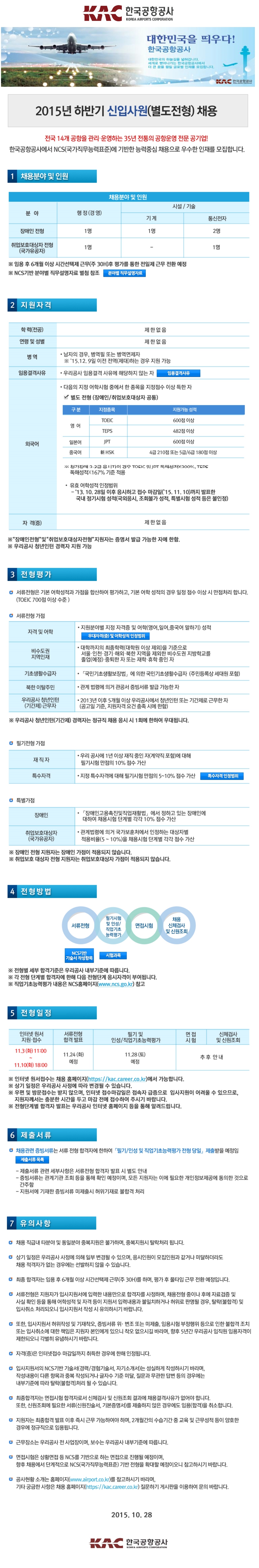 [Çѱ¹°øÇ×°ø»ç] ÇϹݱâ Á¤±ÔÁ÷ ½ÅÀÔ»ç¿ø(ÇàÁ¤/½Ã¼³/±â¼ú) ä¿ë°ø°í ( ~11.10)