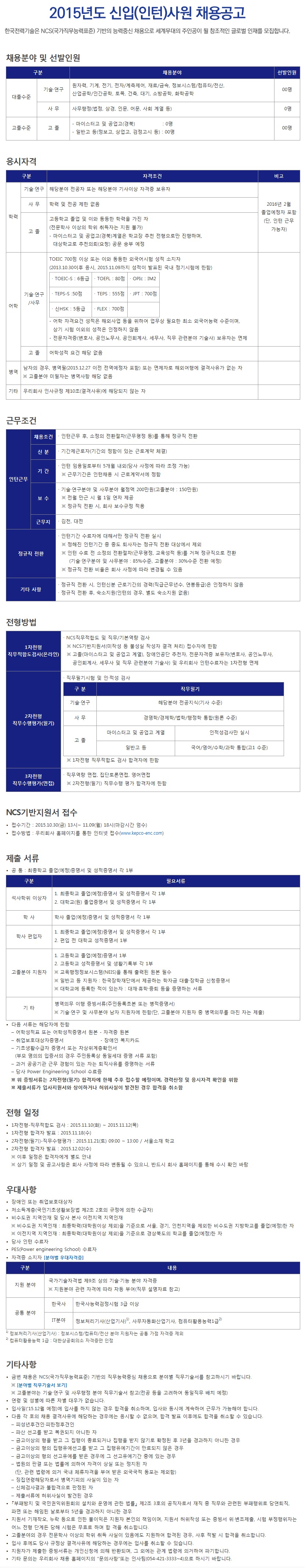 [Çѱ¹Àü·Â±â¼ú] Á¤±ÔÁ÷ ½ÅÀÔ(ÀÎÅÏ)»ç¿ø(±â¼ú¿¬±¸/»ç¹«) ä¿ë°ø°í ( ~11.09)