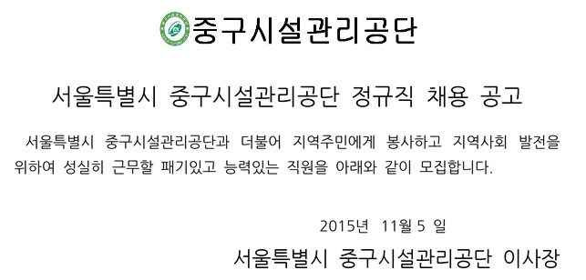 [¼¿ï½ÃÁß±¸½Ã¼³°ü¸®°ø´Ü]Á¤±ÔÁ÷ °æ·Â»ç¿ø(ÇàÁ¤/Àü±â/±â°è) ä¿ë°ø°í ( ~11.13)