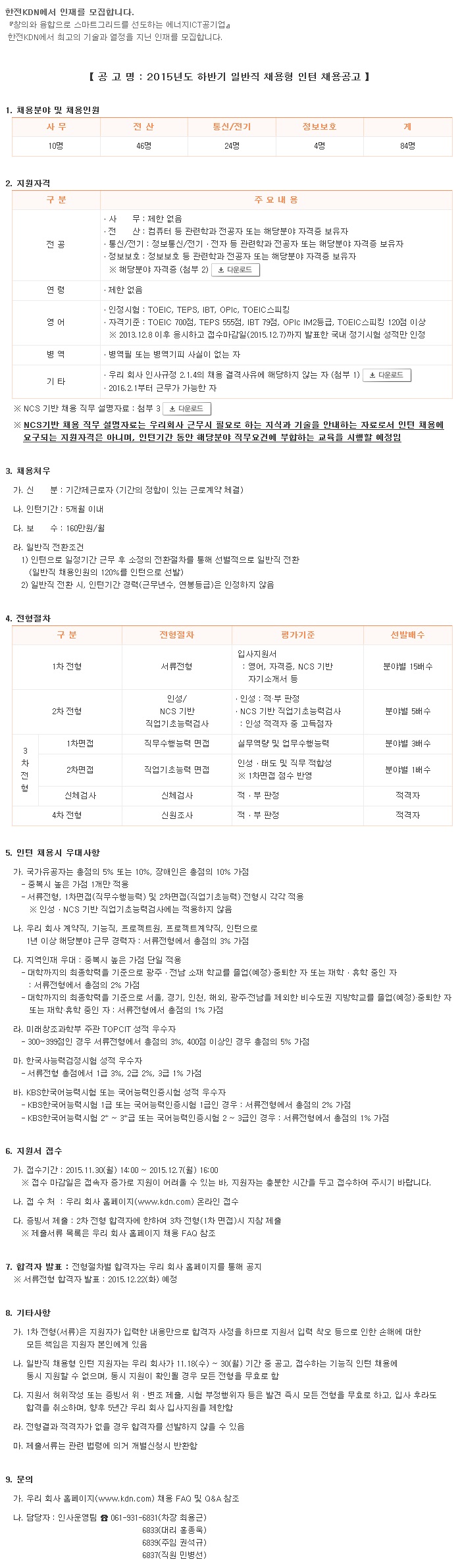 [ÇÑÀü KDN] 2015 ÇϹݱâ Á¤±ÔÁ÷ ½ÅÀÔ(ÀϹÝÁ÷ ä¿ëÇü ÀÎÅÏ) ä¿ë ( ~12.07)