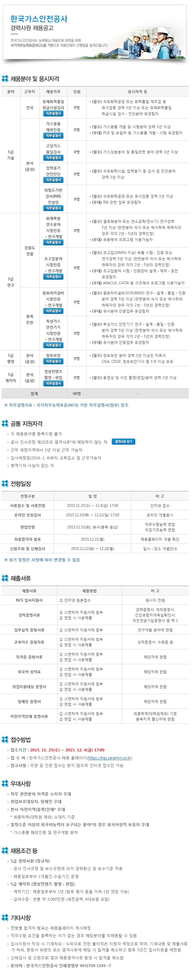 [Çѱ¹°¡½º¾ÈÀü°ø»ç] Á¤±ÔÁ÷/°è¾àÁ÷ °æ·Â»ç¿ø(±â¼ú/¿¬±¸/ÇàÁ¤) ä¿ë ( ~12.04)