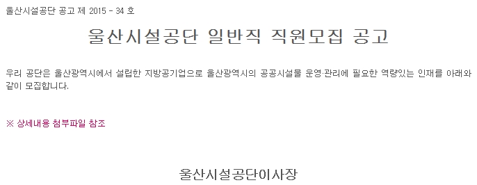 ¿ï»ê½Ã¼³°ø´Ü ÀϹÝÁ÷ Á÷¿ø¸ðÁý °ø°í(2015.11.24.).hwp
