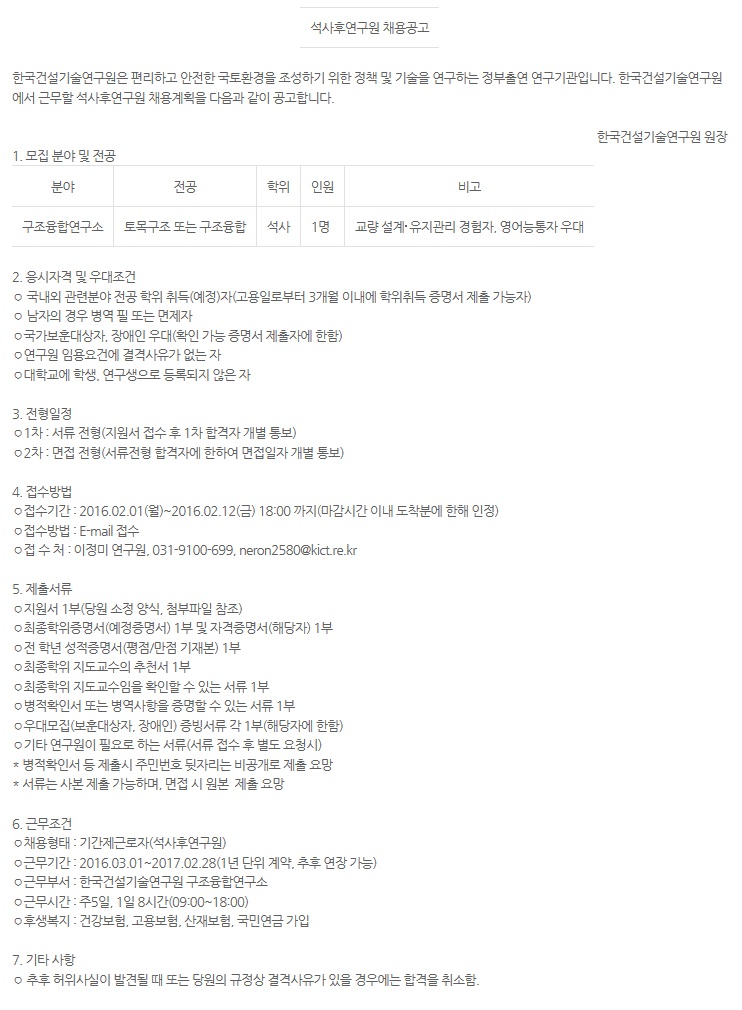 [Çѱ¹°Ç¼³±â¼ú¿¬±¸¿ø] (±¸Á¶À¶Çպоß_Åä¸ñ±¸Á¶ ¶Ç´Â ±¸Á¶À¶ÇÕ) ¼®»çÈÄ¿¬±¸¿ø ä¿ë°ø°í (~2.12)