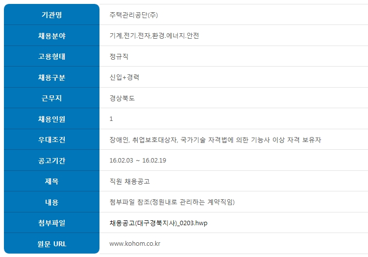[ÁÖÅðü¸®°ø´Ü]ÁÖÅðü¸®°ø´Ü ´ë±¸°æºÎÁö»ç ½ÅÀÔÁ÷¿ø ä¿ë °ø°í(~2.19)