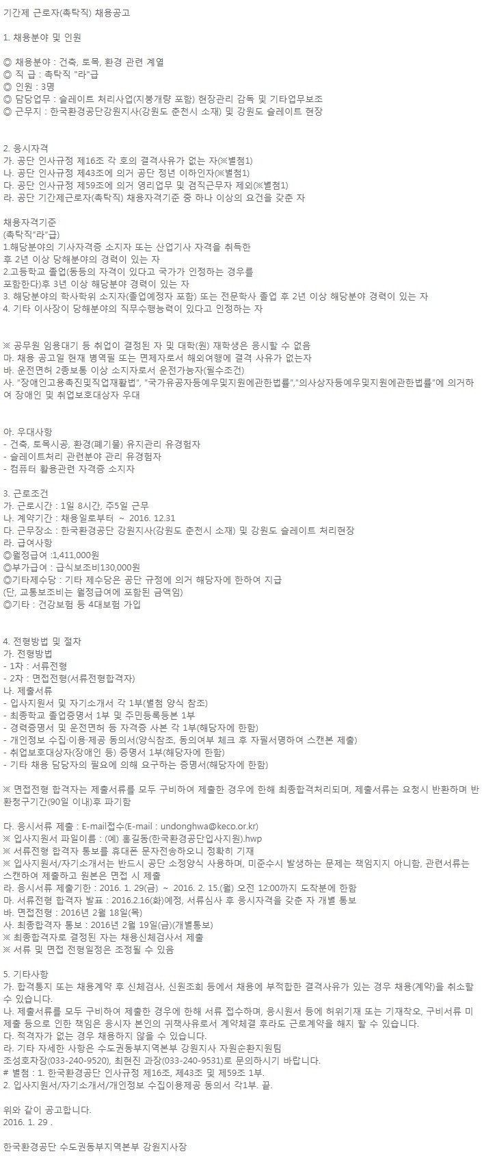 [Çѱ¹È¯°æ°ø´Ü] °¿øÁö»ç ½½·¹ÀÌÆ® 󸮻ç¾÷ ±â°£Á¦±Ù·ÎÀÚ(ÃËŹÁ÷) ä¿ë°ø°í ( ~2.15)