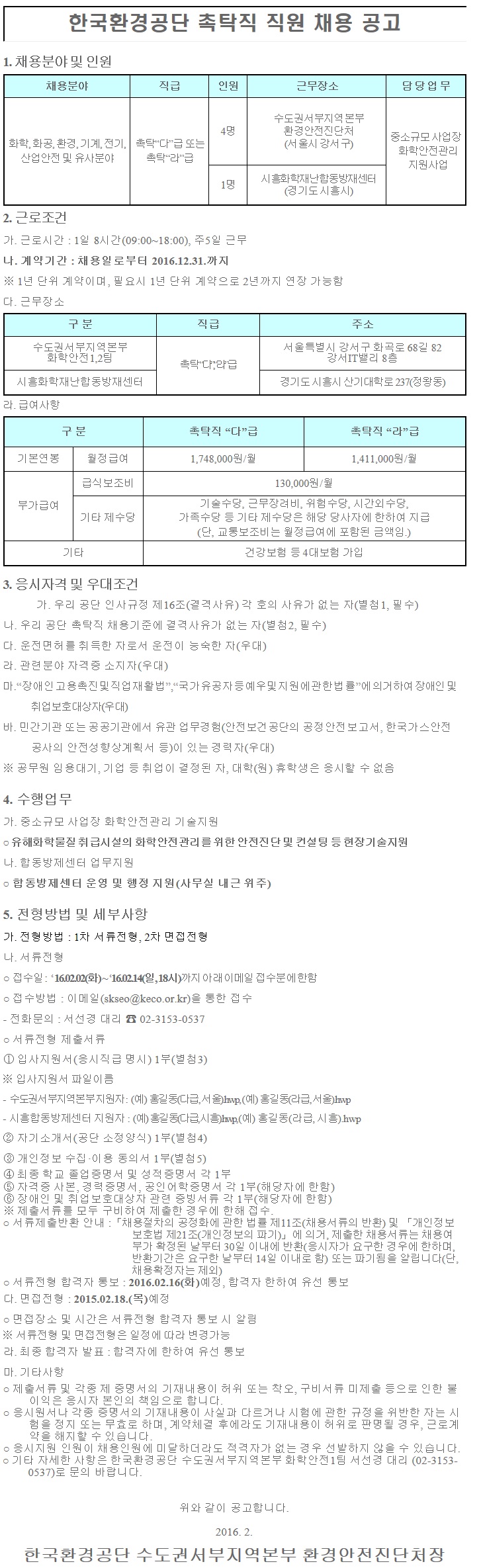 [Çѱ¹È¯°æ°ø´Ü] ¼öµµ±Ç¼ºÎÁö¿ªº»ºÎ ȯ°æ¾ÈÀüÁø´Üó ±â°£Á¦±Ù·ÎÀÚ(ÃËŹÁ÷) ä¿ë°ø°í ( ~2.14)