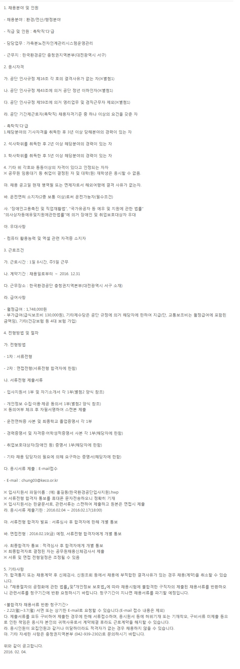 [Çѱ¹È¯°æ°ø´Ü] ±â°£Á¦ ±Ù·ÎÀÚ(ÃËŹÁ÷) ä¿ë °ø°í(~2.17)