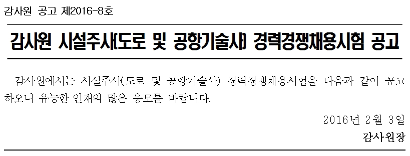 °¨»ç¿ø_µµ·Î°øÇ×±â¼ú»ç_°æ·Â°æÀïä¿ë½ÃÇè_°ø°í(Á¦2016-8È£).hwp