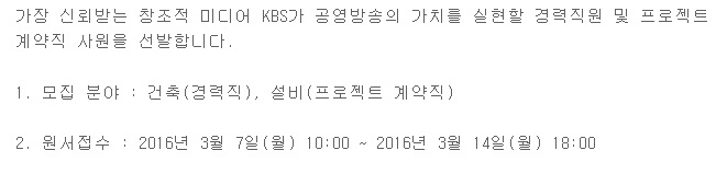 [KBS] 2016 KBS °ÇÃà °æ·ÂÁ÷¿ø ¹× ¼³ºñ ÇÁ·ÎÁ§Æ® °è¾àÁ÷ »ç¿ø °ø°³Ã¤¿ë (~ 3.14)