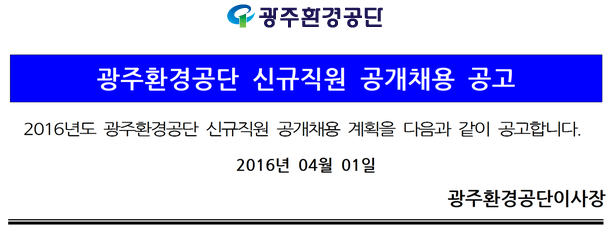 2016 ±¤ÁÖȯ°æ°ø´Ü ½Å±ÔÁ÷¿ø °ø°³Ã¤¿ë °ø°í¹®.hwp
