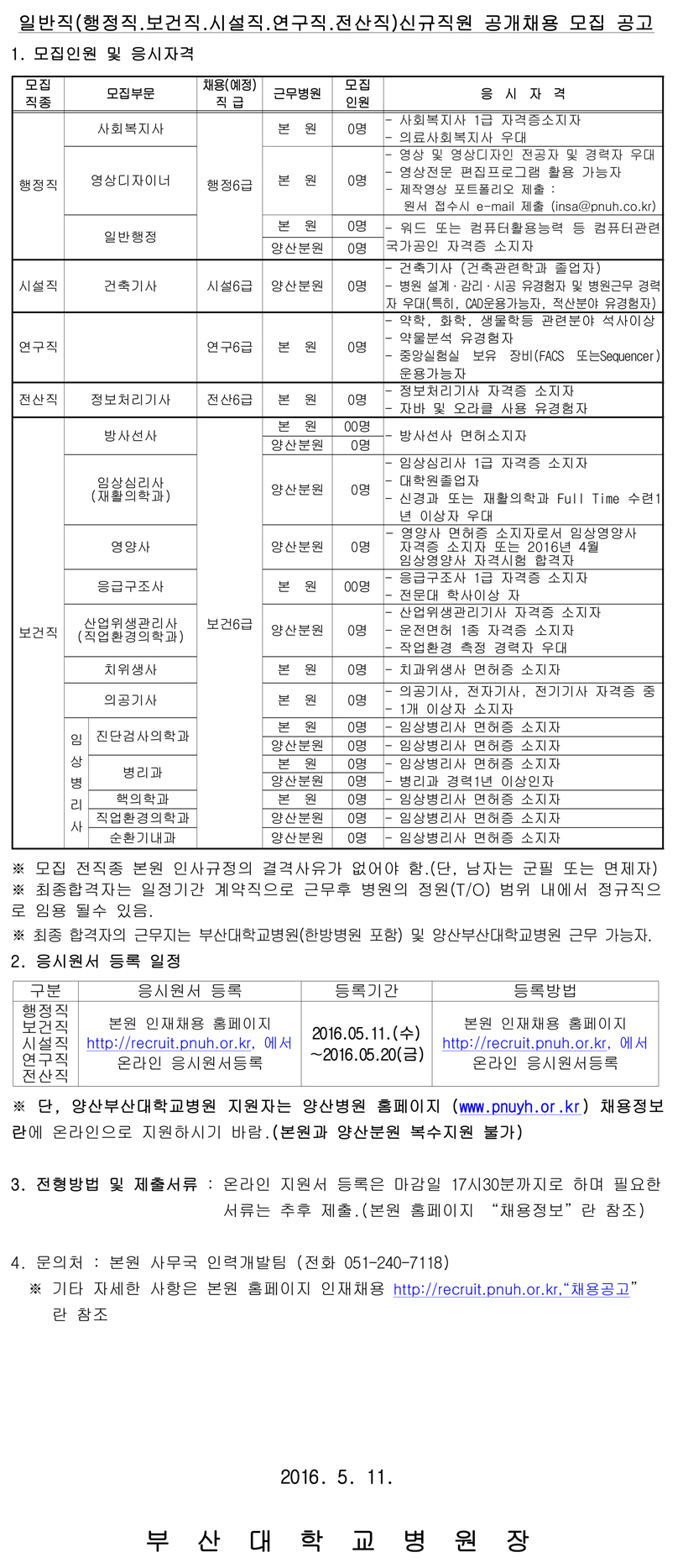 [ºÎ»ê´ëÇб³º´¿ø] Á¤±ÔÁ÷ ½ÅÀÔ/°æ·Â»ç¿ø(°ø°íÂüÁ¶) ä¿ë°ø°í ( ~5.20)
