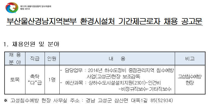 [Çѱ¹È¯°æ°ø´Ü] ºÎ»ê¿ï»ê°æ³²Áö¿ªº»ºÎ ȯ°æ½Ã¼³Ã³ ±â°£Á¦±Ù·ÎÀÚ Ã¤¿ë °ø°í( ~6.06)