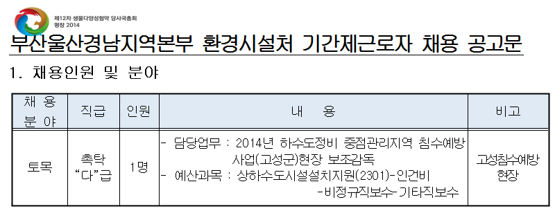 [Çѱ¹È¯°æ°ø´Ü ]ºÎ»ê¿ï»ê°æ³²Áö¿ªº»ºÎ ȯ°æ½Ã¼³Ã³ ±â°£Á¦±Ù·ÎÀÚ(ÃËŹ "´Ù"±Þ) ä¿ë°ø°í(°í¼ºÄ§¼ö¿¹¹æ)( ~6.30)