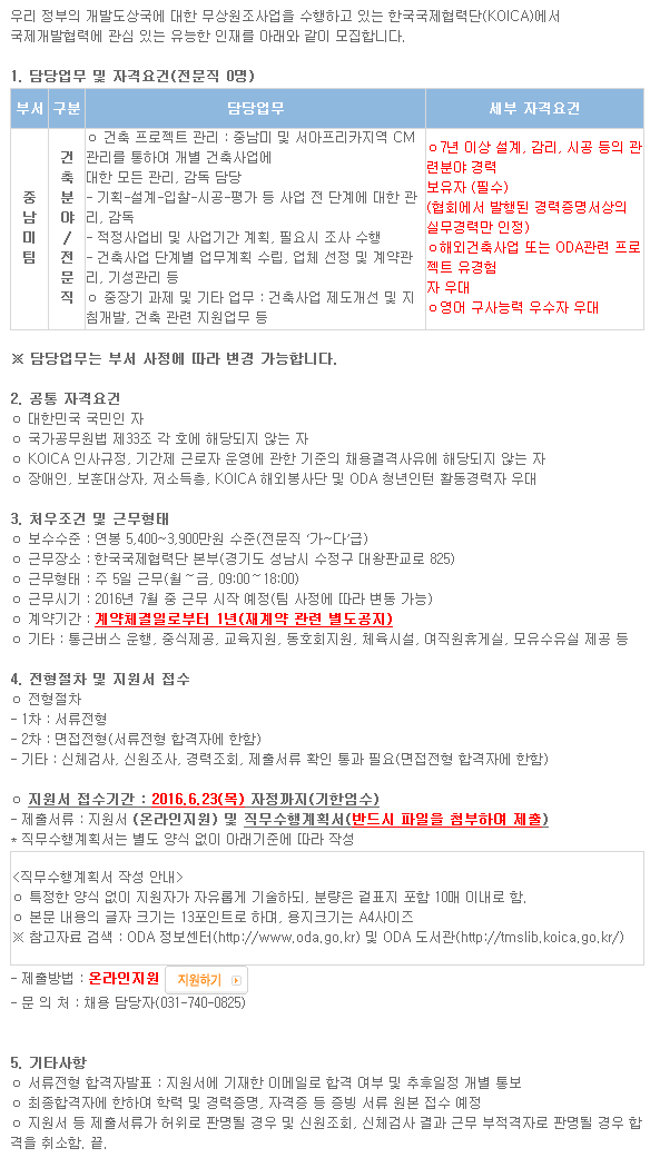 [Çѱ¹±¹Á¦Çù·Â´Ü] ±â°£Á¦±Ù·ÎÀÚ ¸ðÁý(Àü¹®Á÷/°ÇÃàºÐ¾ß) ( ~6.23)
