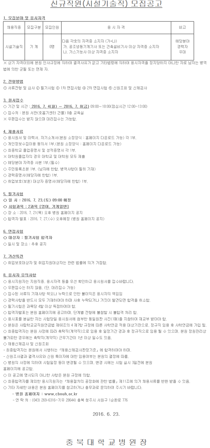 [ÃæºÏ´ëÇб³º´¿ø] Á¤±ÔÁ÷ ½ÅÀÔ/°æ·Â»ç¿ø(½Ã¼³±â¼úÁ÷) ä¿ë°ø°í ( ~7.08)