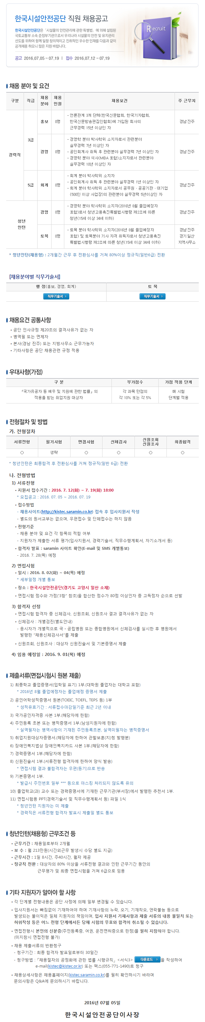 [Çѱ¹½Ã¼³¾ÈÀü°ø´Ü] Á¤±ÔÁ÷ ½ÅÀÔ/°æ·Â»ç¿ø(°ø°íÂüÁ¶) ä¿ë°ø°í (~ 7.19)
