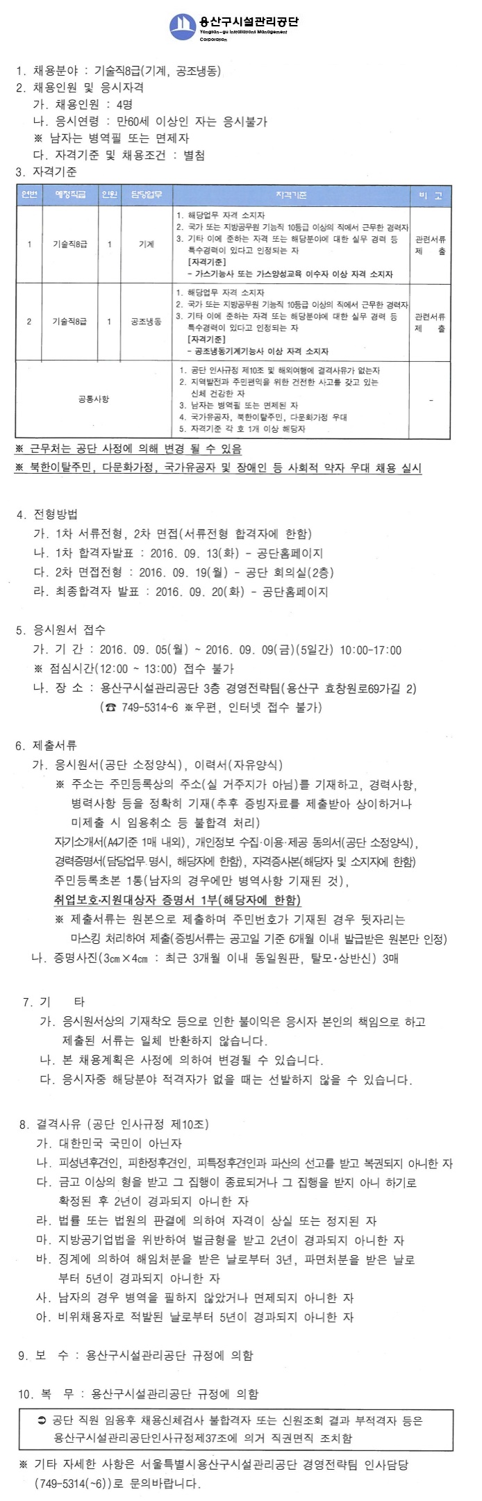 [¿ë»ê±¸½Ã¼³°ü¸®°ø´Ü] Á¤±ÔÁ÷ °æ·Â»ç¿ø(±â°è/°øÁ¶³Ãµ¿) ä¿ë°ø°í ( ~9.09)