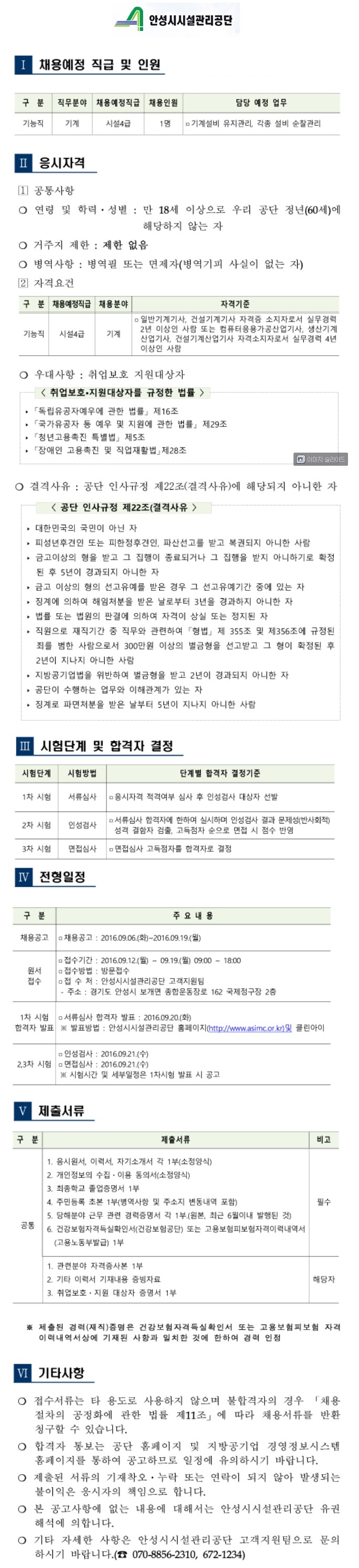 [¾È¼º½Ã½Ã¼³°ü¸®°ø´Ü] Á¤±ÔÁ÷ °æ·Â»ç¿ø(±â°è) ä¿ë°ø°í ( ~9.19)