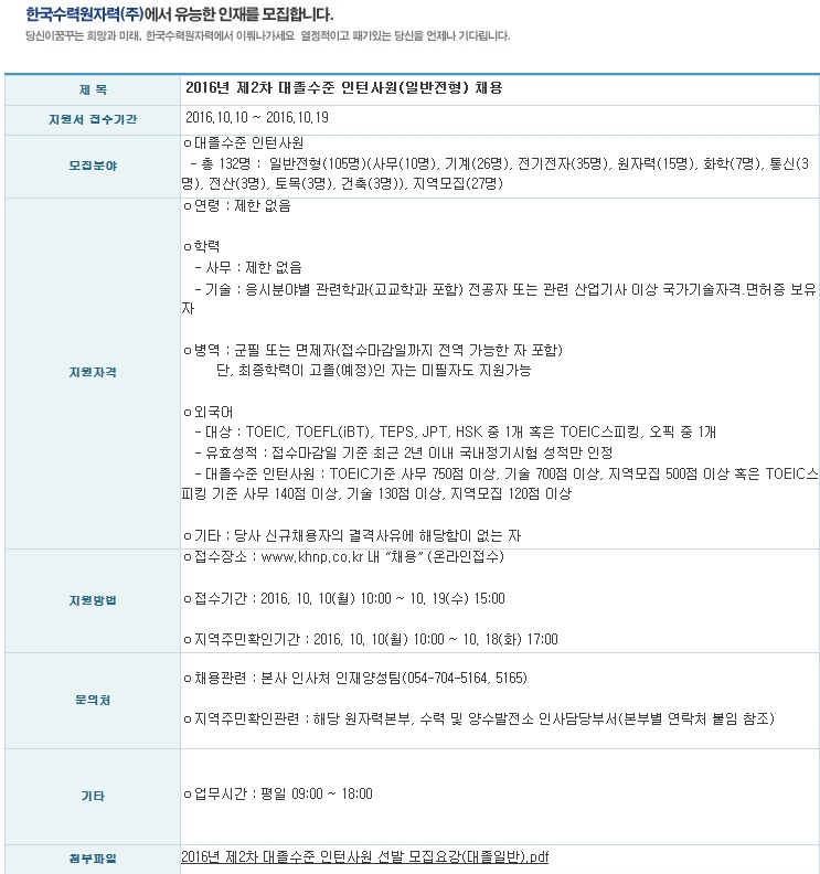 2016³â Á¦2Â÷ ´ëÁ¹¼öÁØ ÀÎÅÏ»ç¿ø ¼±¹ß ¸ðÁý¿ä°(´ëÁ¹ÀϹÝ).pdf