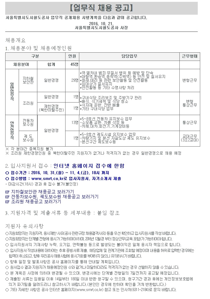 [¼¿ïµµ½Ãöµµ°ø»ç] 2016³â ¾÷¹«Á÷ °ø°³Ã¤¿ë °ø°í (~11.04)