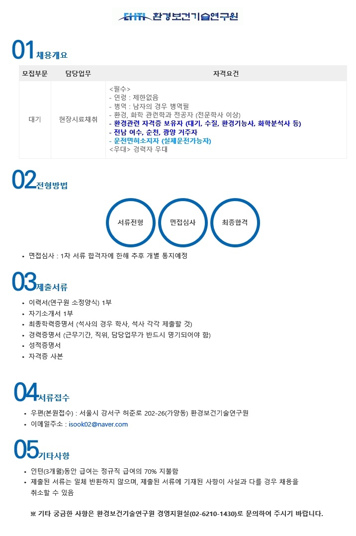 [ȯ°æº¸°Ç±â¼ú¿¬±¸¿ø] Á¤±ÔÁ÷ ½ÅÀÔ/°æ·Â»ç¿ø ä¿ë°ø°í (~ ä¿ë½Ã)