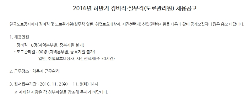 [Çѱ¹µµ·Î°ø»ç] 2016³â ÇϹݱâ Á¤ºñÁ÷, ½Ç¹«Á÷(µµ·Î°ü¸®¿ø) ä¿ë°ø°í (~11.8)