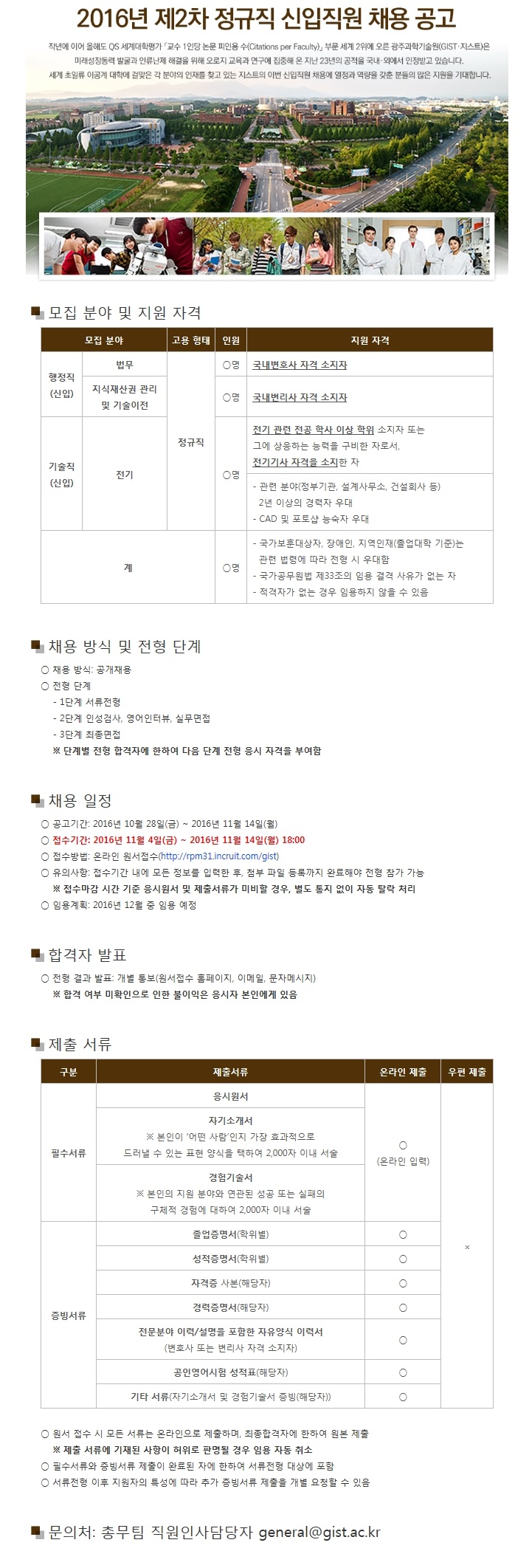 [±¤ÁÖ°úÇбâ¼ú¿ø] 2016³â Á¦2Â÷ Á¤±ÔÁ÷ ½ÅÀÔÁ÷¿ø ä¿ë°ø°í(~11.14)