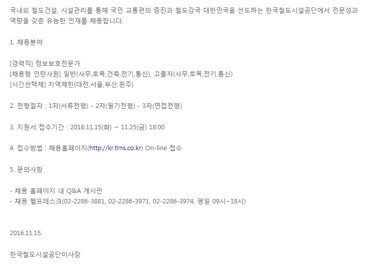 [Çѱ¹Ã¶µµ½Ã¼³°ø´Ü] 2016³â Á÷¿ø °ø°³Ã¤¿ë (~11.25)